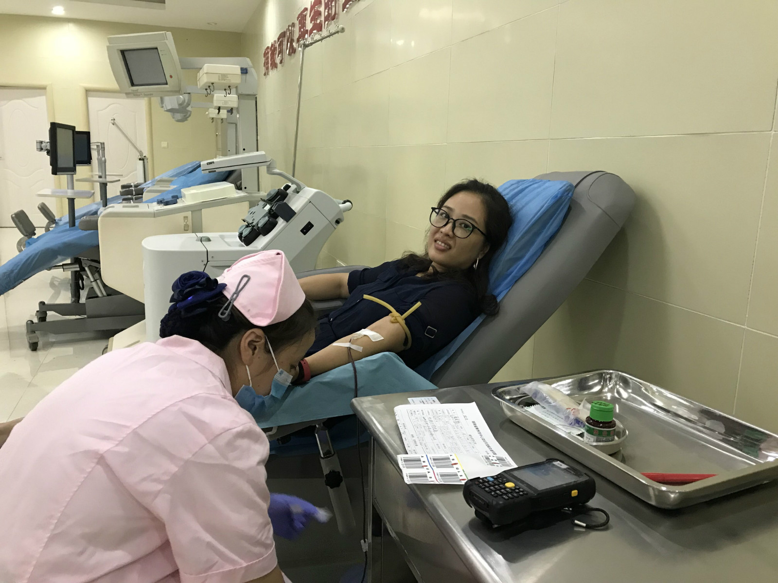 经过采血护士一番严格检测,得知各项指标均符合献血条件时,黄恋雅可算是放心了。“我和我老公第一次献血都是在单位组织的献血活动,认识到无偿献血的重要性后,我们每年都至少会参加一次无偿献血。”