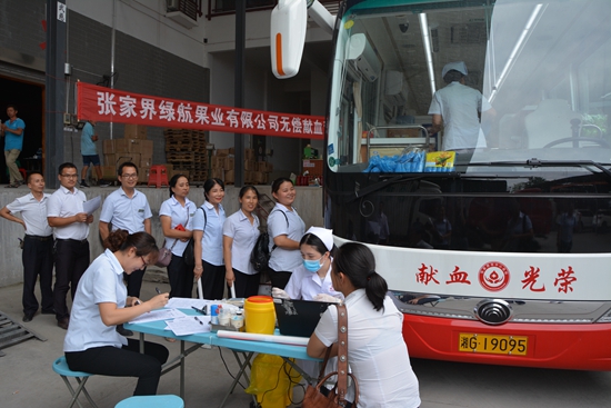 张家界绿航果业有限公司成立于2005年3月,是一家从事果蔬生产、收购、贮藏、加工、冷链运输、销售为一体的农业产业企业。公司负责人非常注重企业文化建设,已经连续2年定期组织员工参加无偿献血,组织无偿献血也已经成为作为教育职员、树立企业形象、践行社会责任的一种方式。