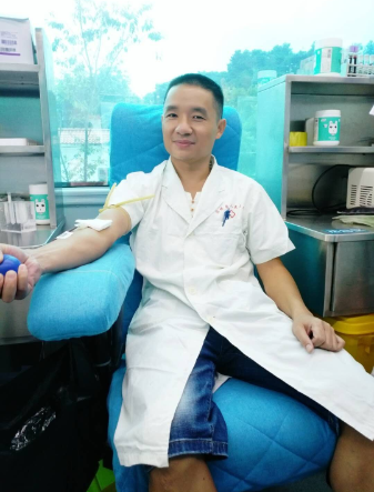 图三: 德保县人民医院妇产科主任沈文鑫在献血