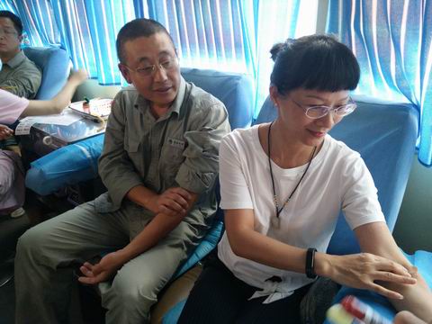 解吉梁和朱文华夫妇同为公司员工,此次也携手一起前来献血:“无偿献血活动是用最直接和最诚挚的方式,向需要输血的人表达了一名国网人的热心和爱心,想到自己的血液在某一天可以救人性命,我感到无比光荣!”