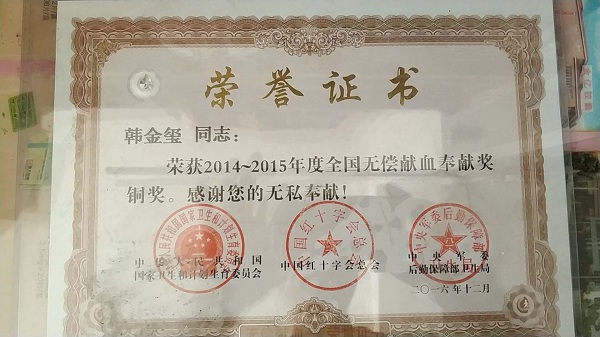 作为一名医生平日里治病救人,闲暇时宣传无偿献血。用可以再生的血液救助不可重来的生命,是韩金玺医生一生的信条。