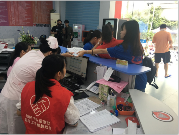 9月8日,市中心血站联合市金融团工委在中心城区捐血屋开展“健康百色、红色行动”无偿献血活动,市金融团工委的青年志愿者们挽起衣袖,用实际行动为最美的九月添上色彩。
