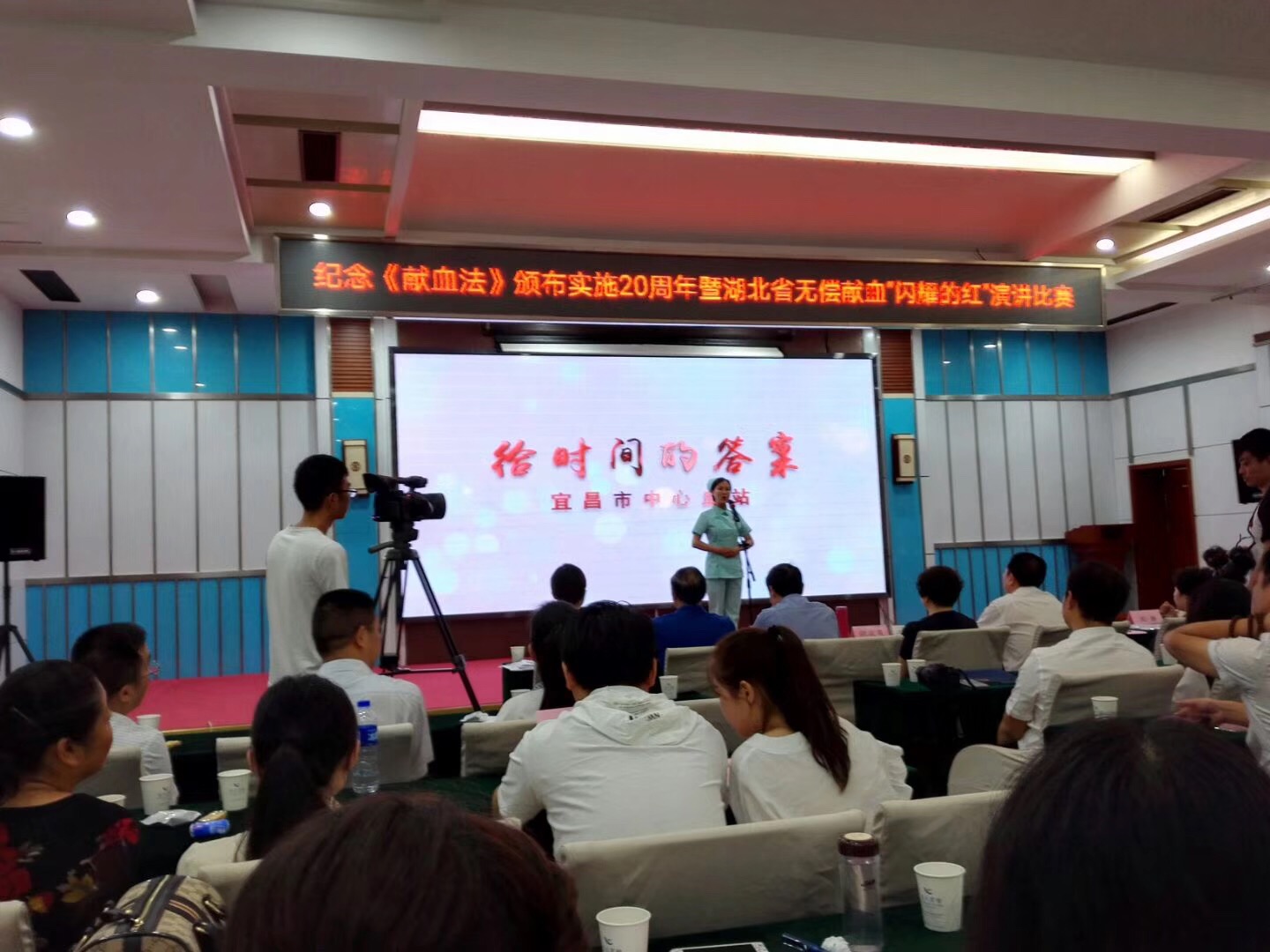 9月7日,在湖北省举办的纪念中华人民共和国《献血法》颁布实施20周年暨湖北省无偿献血“闪耀的红”演讲比赛中,宜昌代表队过关斩将,在小组赛中分别荣获一、二、三等奖。本次演讲比赛血站组一等奖获得者宜昌市中心血站护士邓美迪将代表湖北省参加“闪耀的红”全国血站演讲汇报演出。