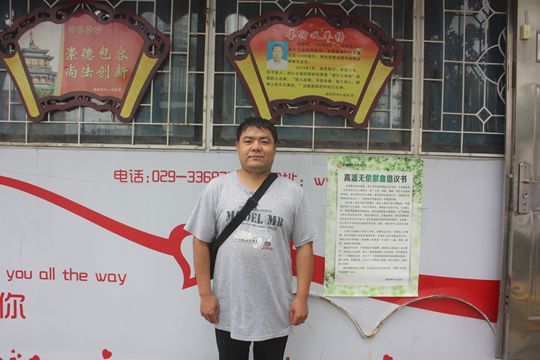 在咸阳市秦皇路七厂十字献血屋,樊炳焱准备再次献血,当他走上献血车咨询时,离上次献血时间还差好几天。樊炳焱说:“多年来,在朋友的介绍中,对咸阳崇德包容的精神很感动,就决定来这个爱心城市创业了。我是O型血,只要需要,我会立即来献血。”