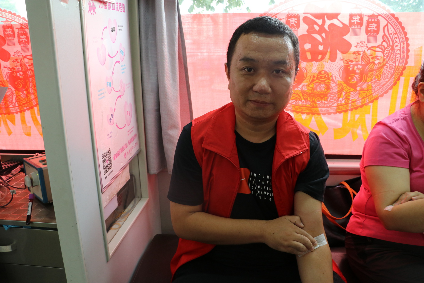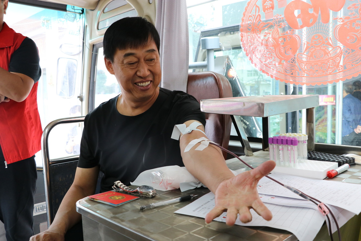 党工委委员、武装部长闫贵兰正在献血