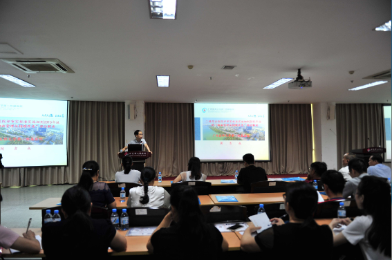 图为广西医科大学第一附属医院输血科主任周吉成博士在授课