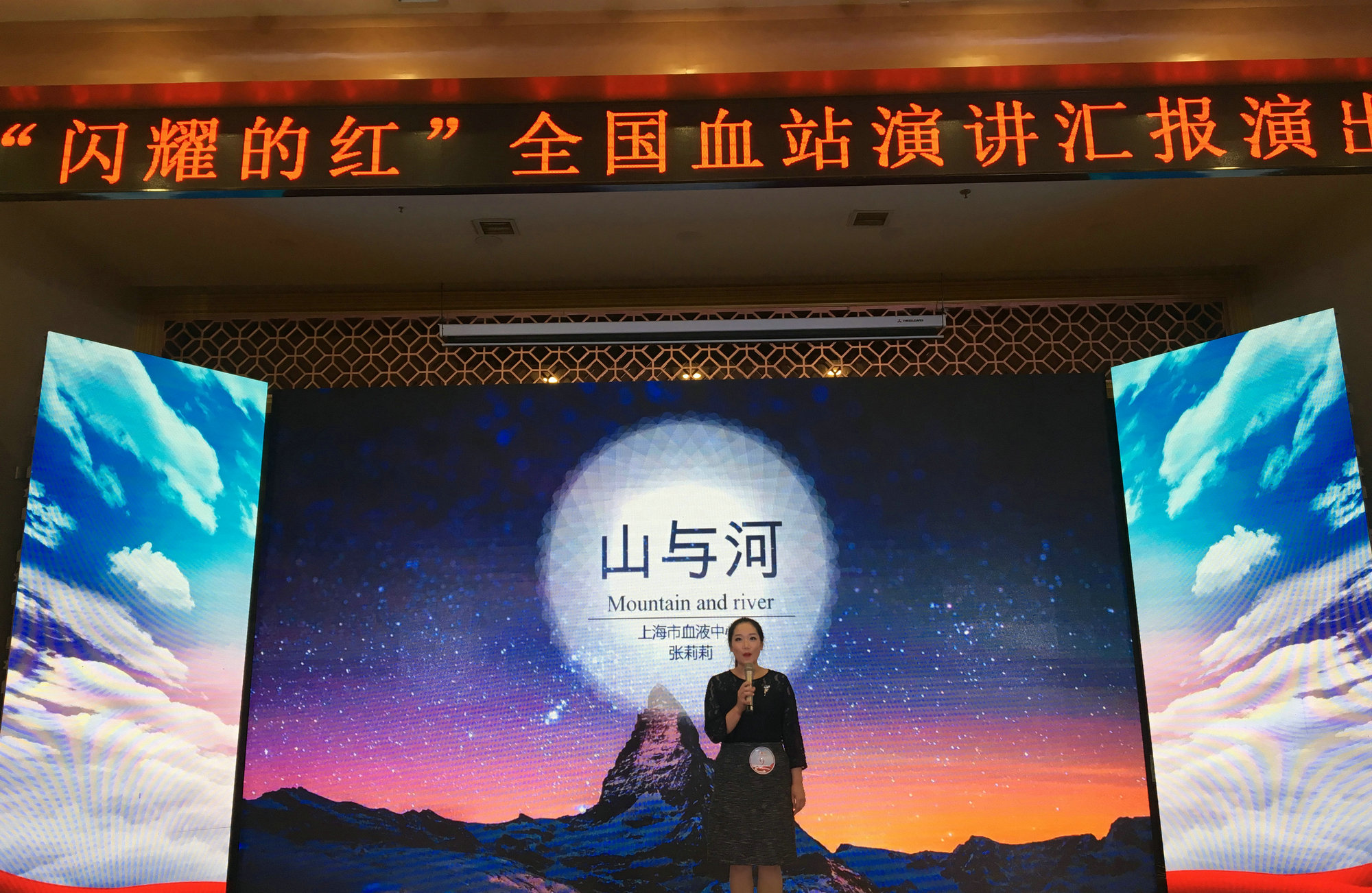 上海市血液中心选手张莉莉以《山与河》为题,饱含深情地向听众讲述了两位献血者的感人事迹,一位是来自上海市公安局特警总队、攀登珠穆朗玛峰的旗手刘昊,在12年间无偿献血130次,相当于8名成年人体内血液的总和,还整整10年每月捐献两次血小板,从未间断。另一位是普通的上海市民郑红萍,连续六年都参加了Rh阴性应急献血,每次主动要求献出400毫升,并长期在流动献血车做义工,宣传无偿献血募集献血者。