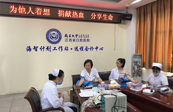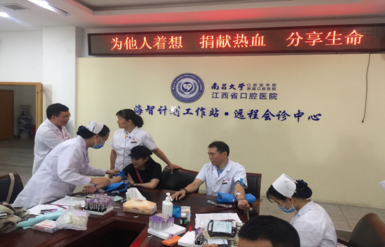9月6日,南昌大学附属口腔医院开展2018年下半年公益献血活动,38位无私奉献的白衣天使在11楼会议室排起了整齐的队伍,共计献血8900ml,传递着满满的爱心正能量。多年来,南大口腔医院一直坚持一年两次参与无偿献血活动。在全院职工的积极参与下,无偿献血的队伍逐渐壮大。在全省2015-2016年度无偿献血先进单位的表彰工作中,医院获得“全省无偿献血促进奖单位奖”。