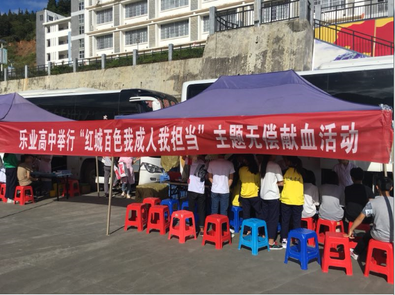 在中秋佳节来临之际,为进一步加大我市无偿献血的宣传力度和营造“献血有益健康”的文明、祥和氛围,广泛向社会公众宣传“奉献爱心,真情传递”的理念,发动社会各界人士加入到无偿献血者队伍中来,9月20—21日,市中心血站联合乐业县高中开展了以“红城百色·我成人·我担当”为主题的无偿献血活动。活动得到校领导大力支持,并发动全校师生积极参与。