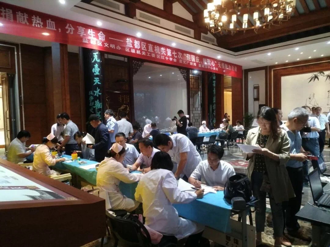 近日,由盐城市盐都区文明办、区级机关工委、区红十字会、区文广新局、盐城市中心血站联合组织的捐献热血、分享生命---盐都区直机关第七次“迎国庆、献爱心”无偿献血活动在世纪公园群艺馆开展,区委常委、宣传部长葛建华带头参于到献血大队伍中,共有宣传部、组织部、区委办、纪委、农委、卫计委丶编办、公安局、交运局、税务局等数十家区直机关参与。本次活动共有136人成功献血,献血总量37800毫升。现场献血的有年轻人、老人、妇女等等,他们虽来自不同的单位,确是奔着同一个目标而来。现场还可以看到很多志愿者,每一次,不管有什么活动,总会有志愿者在一旁默默奉献。