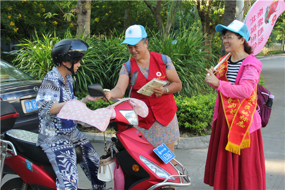 活动当天,志愿者们从海口市秀英时代广场出发,沿海秀中路自西向东沿路向市民讲解无偿献血政策、法规和科学献血及捐献造血干细胞知识,派发宣传资料,解除民众对无偿献血的错误认识及顾虑,以自己的亲身感受感召健康适龄人群加入到无偿献血队伍,他们途经东方洋大厦、丘海大道、汽车西站、海港学校,最后回到秀英时代广场,全程约4.2公里。在一个半小时的徒步宣传过程中,志愿者们高举着印有“奉献血液 共享生命”、“无偿献血 助人利己”等口号的宣传举牌,醒目的志愿者红马甲和整齐划一的队伍,吸引了不少市民的驻足观看和前来咨询,成为了九月椰城一道亮丽的风景线。]