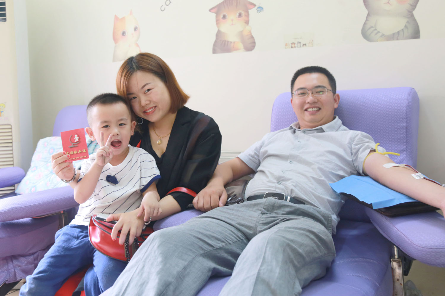 9月24日,热心市民喻峰带着妻儿一起走进城站路献血屋参加献血,他已经累计献血2300毫升。