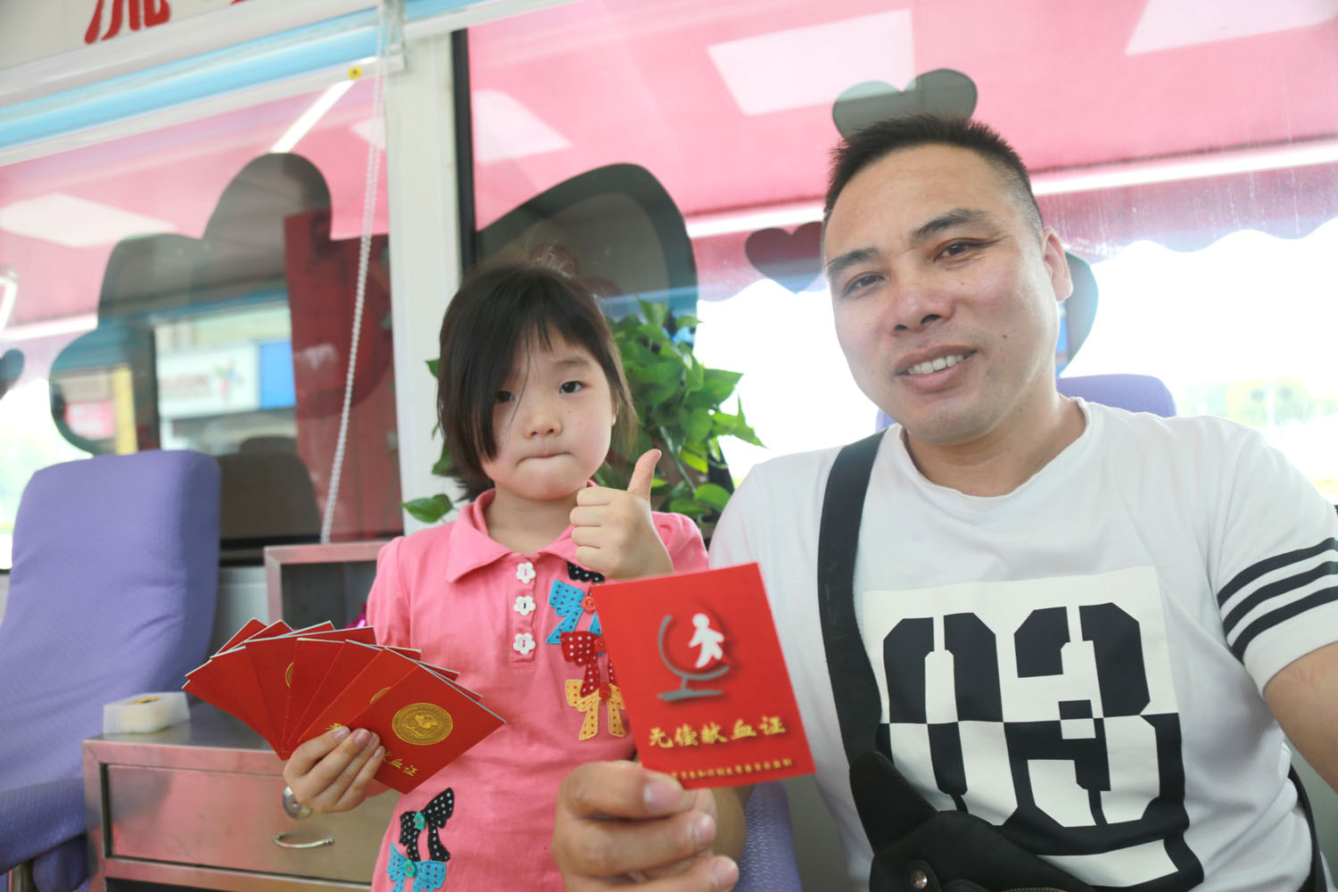 当女儿向他竖起大拇指时,他高兴地说:“第一次献血是98年,在深圳,后来在东莞也献过,现在回到孝感接着献血,我也算跨越了20年,见证了《献血法》实施后的20年,很激动,就连献血证都有好多个版本的,我会坚持献血挽救生命。”