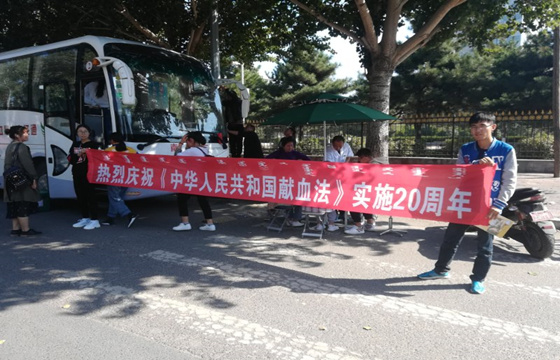 通辽市中心血站设立2018年9月为《中华人民共和国献血法》实施20周年宣传月。在《献血法》实施的20年里,有千千万万个爱心团体和社会各界爱心人士积极踊跃地加入到无偿献血队伍中来,使通辽市喜获五次“全国无偿献血先进市”的荣誉称号。