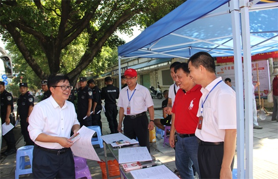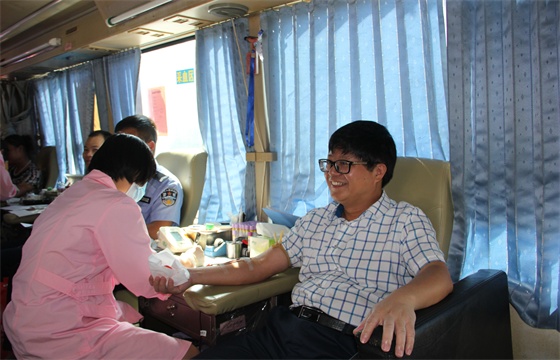 虽然天气炎热,但依然阻挡不了各单位的公职人员们前来献血的脚步。献血现场刚布置好,合山市公安局、合山市检察院、合山市岭南镇中心小学等单位的公职人员就到达了献血车前,在工作人员的指导下有条不紊的进行咨询、填表、体检、初筛、采血等,现场一片火热。合山市政府潘市长、市人大黄副主任、市人民法院吴院长率先垂范,虽然公务繁忙仍抽空到达活动现场,带头捐献热血。