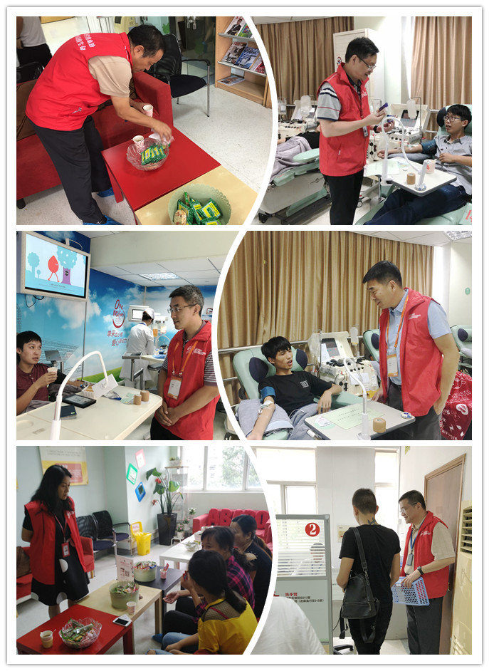9月3日至25日,中国输血协会理事长、世界卫生组织输血合作中心主任朱永明,上海市血液中心(以下简称“中心”)党委书记邹峥嵘,中心主任、党委副书记陆韬宏,中心党委副书记、纪委书记、副主任林俊杰,中心副主任张晰,中心副主任、工会主席朱自严在繁忙工作之余利用午休时间先后来到中心三楼单采室为成分献血者提供关爱服务 。
