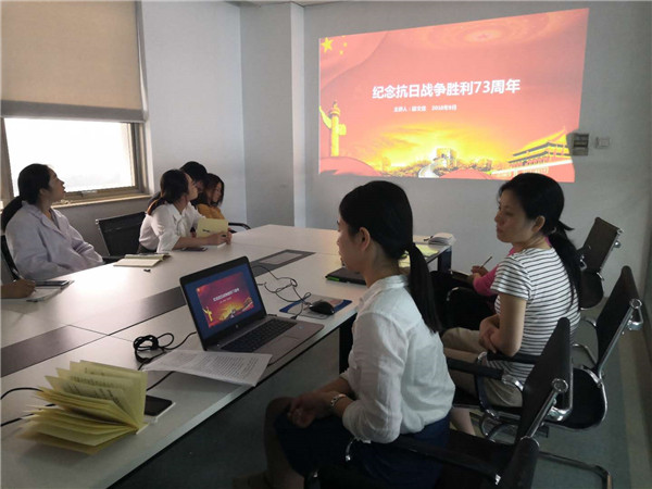 党员胡文佳同志党课主题是“纪念抗日战争胜利73周年”,她介绍了纪念日的由来、设立背景和意义,纪念日设立的意义在于实现中国梦、捍卫祖国尊严、保卫国土完整,铭记国史,勿忘国耻。