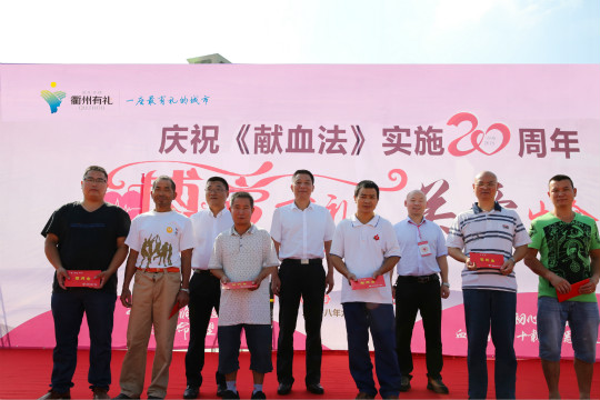 二是市献血办主任张福俊作“血浓情暖二十载 感恩有礼衢城人”感恩致辞。张主任对我市无偿献血工作予以充分肯定,并向一直关心支持无偿献血事业发展的广大无偿献血者和志愿者以及社会各界表示衷心的感谢!《献血法》实施20年,也是我市无偿献血健康发展的20年。20年来,我市无偿献血工作在市委、市政府的高度重视、关心支持下,通力合作、协调发展、强化宣传、市民参与,无偿献血工作取得了突破性进展,至2018年8月底,全市参加无偿献血达40余万人次,累计献血量约11万升,2002年起实现并保持了临床用血100%来自自愿无偿献血,未发生可控范围内经输血传播的疾病,有力地保障临床用血质量和安全。衢州市已连续七次荣获“全国无偿献血先进市”“浙江省无偿献血先进市”等荣誉称号。无偿献血工作任重道远,希望全市上下能共同配合,再接再厉,为进一步推进我市无偿献血工作开展、保障全市人民身体健康、更好地推动“活力新衢州,美丽大花园”发展建设作出新的贡献。