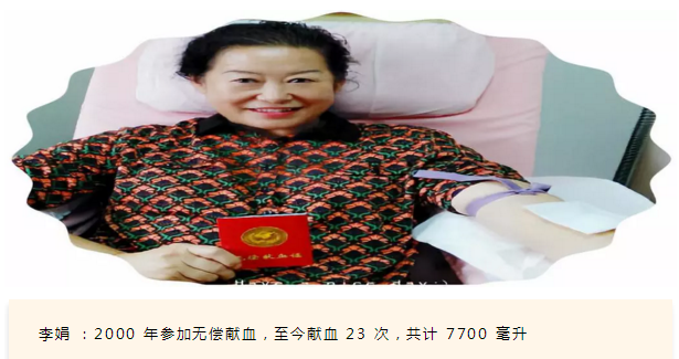 人的一生都在为了自己的生活而努力打拼,正所谓越了解、越参加,越懂得、越支持。因为工作的原因,她们见到了太多因缺血而推迟的手术,比旁人更加懂得患者、家属对血液的那份期盼。只是,每到八九月份,各医院手术治疗明显增加、临床用血量显著上升、血站库存各型血量均有所下降,这成了两位临退休职工一直坚持献血的理念。