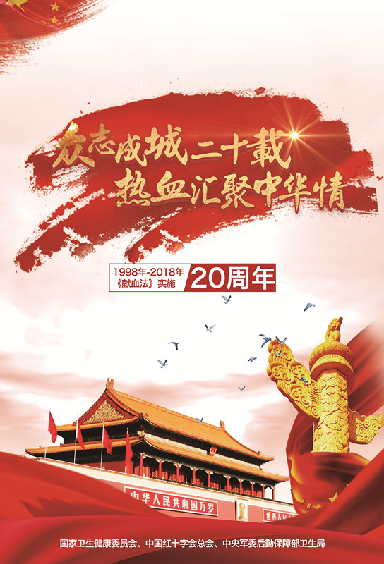 1998年-2018年,《献血法》走过20年岁月。感谢所有奉献爱心的无偿献血者,生命因血液而延续,真情因你们而夺目,你们的爱心为患者搭起的生命之梯,你们的善良为患者点亮的生命之灯。