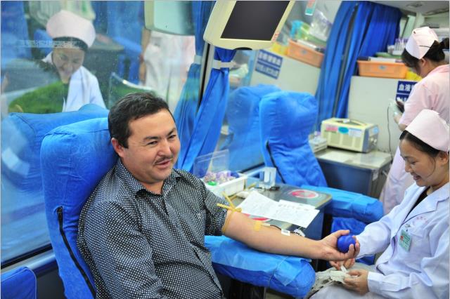 黄昏里的感动。太阳隐进了敢壮山后,只余下淡淡的晚霞,献血活动也接近尾声,工作人员开始整理装具,这时,一位高鼻深目的维吾尔大叔在友人的陪伴下走进了捐血车,