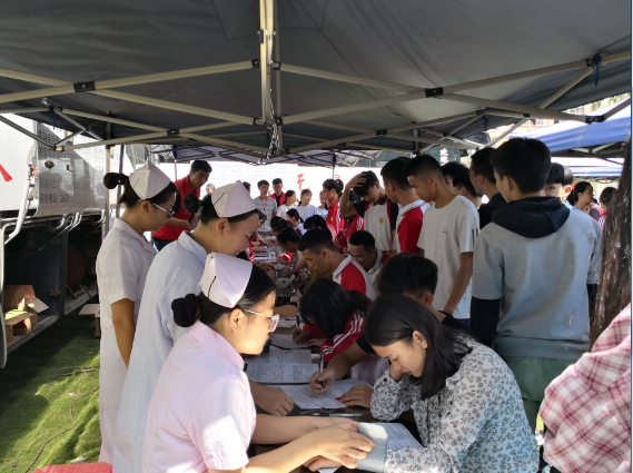 无偿献血是人间传递真情的红色纽带,是“人人为我、我为人人”的奉献精神体现,也是每个适龄健康公民的义务。为庆祝《献血法》颁布实施20周年及国庆节来临之际,保障全市节日期间的血液储备充足,用血安全,9月29日,市中心血站联合德保县高中开展了以“红城百色·我成人·我担当”为主题的无偿献血活动。活动得到校领导大力支持,并发动广大师生积极加入到献血队伍当中,用他们滴滴鲜血搭建一座爱的桥梁。