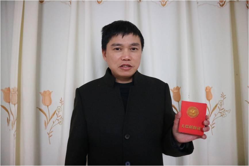 何天斌回忆,他第一次献血是在2008年,单位开展的一次无偿献血活动中。何天斌说,水电站虽然不大,员工不过90号人,但每年都会开展献血活动。因为对献血知识了解得少,开始几年他并没有参加。直到2008年,何天斌知道献血有减少血液粘稠症、预防心脑血管疾病发生等好处,而且血液是救人的重要物质,只能依靠健康适龄的人捐献,他便鼓起勇气参加了人生当中的第一次无偿献血。