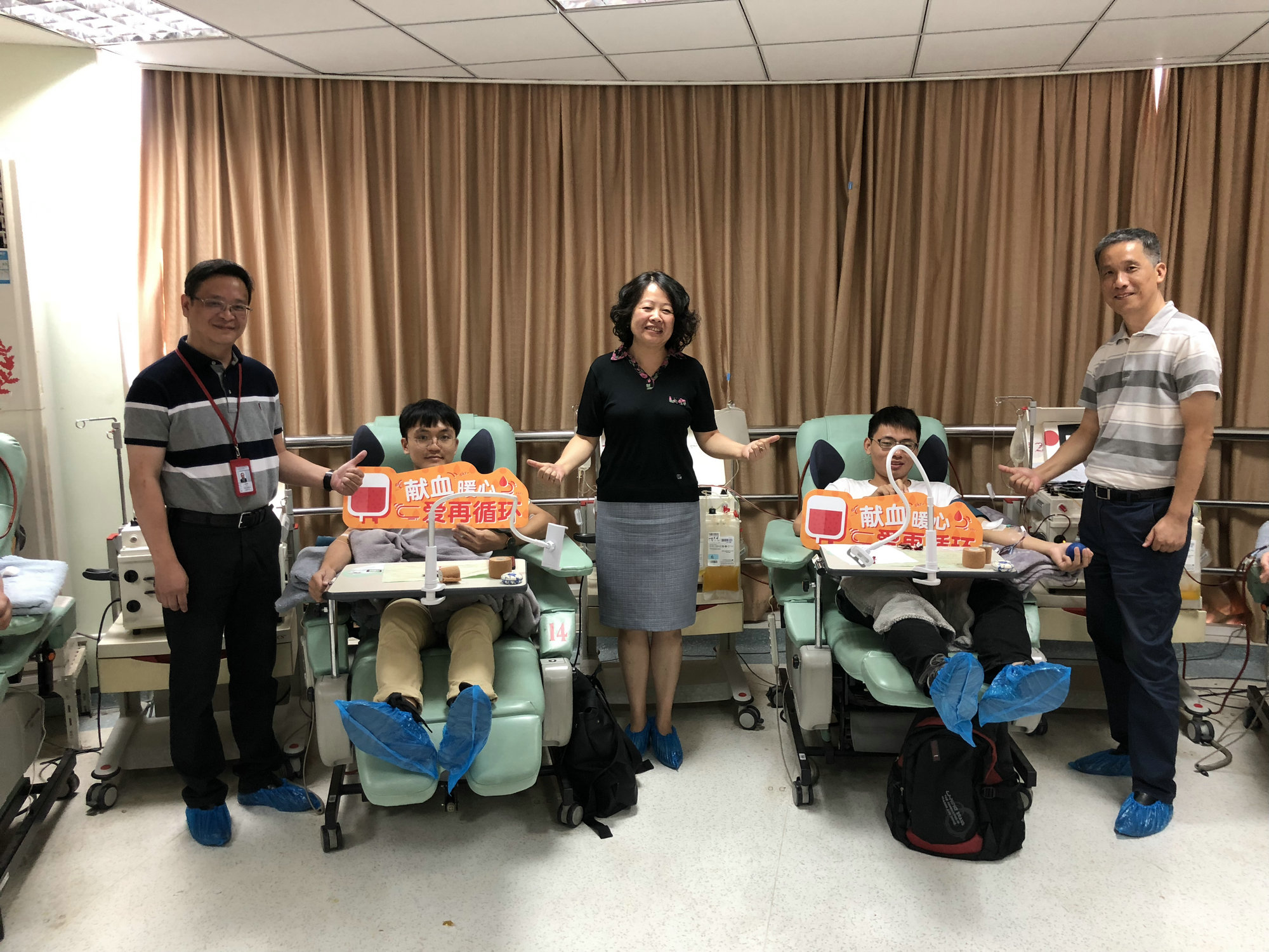 上海交通大学医学院党委副书记、纪委书记施建蓉,研究生院常务副院长董艳,医管处副处长张斌渊,学生工作指导委员会副秘书长汤丽等一行人在上海市血液中心党委书记、上海市血液管理办公室主任邹峥嵘,上海市血液管理办公室副主任陈强的陪同下,一同慰问了正在献血的教师职工和学生。
