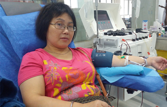 10月1日上午9:00,江西省血液中心南区采血大厅就迎来了众多市民前来献血,他们以这种特殊的方式庆祝国庆节。胡新民、刘开萍夫妇当天携手前来献血。经过体检,胡新民捐献了2个治疗量的机采血小板,而妻子刘开萍捐献了1个治疗量的机采血小板。据悉,刘开萍比丈夫更早参加献血,她之前已经累计献血33次了。丈夫是去年在她的带动下参与献血的,当天是第5次献血。