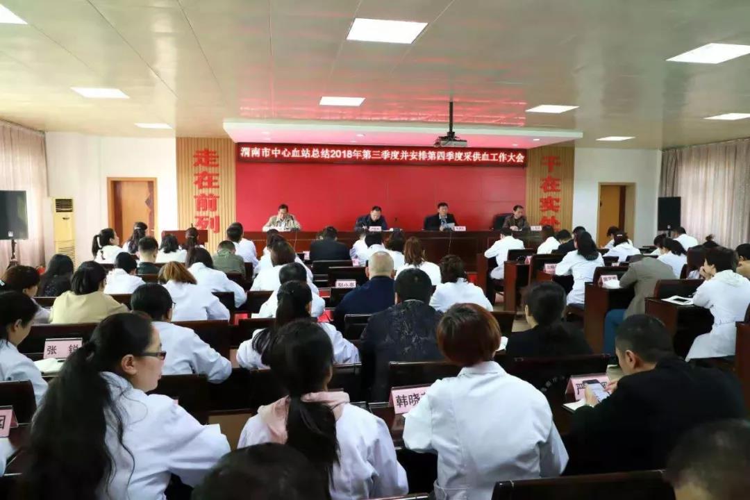 10月8日上午,渭南市中心血站在五楼多功能厅召开了2018年度第三季度采供血工作总结暨第四季度工作部署大会。会议由工会主席吴剑主持,全体干部职工参加了会议。