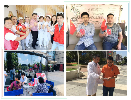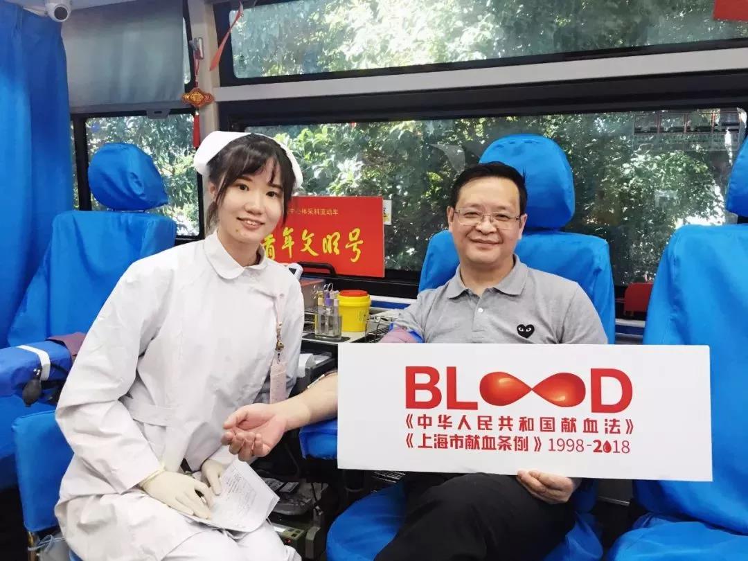 10月1日,上海市血液中心党委书记、上海市血液管理办公室主任邹峥嵘在人民广场捐献400ml热血。