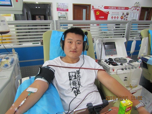 小姜是一名在校大学生,大学生活已经过去了两年,他在认真完成学业的同时,也积极参加无偿成分献血,今年的“十一”是他第20次参加成分献血,累计捐献28治疗单位的机采血小板,他说;“我希望更多的病人能够帮助,今后还会继续坚持成分献血。”