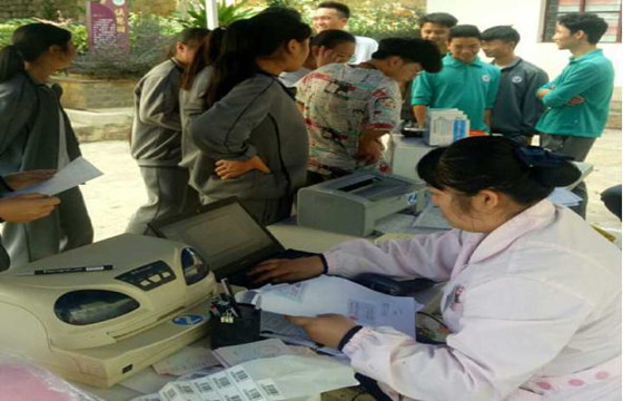 师生们听从医务人员的要求,认真的填写献血信息表,进行检查,听取着献血过程中应该注意的事项,符合条件的师生陆续登上献血车开始献血。