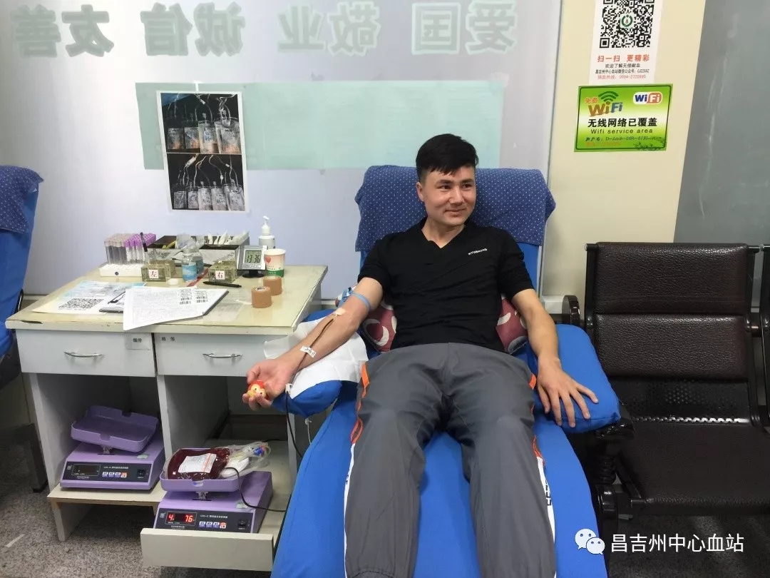 “你好!我是昌吉学院的阿卜杜艾力,刚才血站老师打电话说有病人急需B型Rh阴性血,我是B型阴性血,就打车赶过来献血。”寻声而去,只见一个帅气的维吾尔族小伙跟大厅里的工作人员在说话,“太好了!你这么快就来了?谢谢你!谢谢你!刚才约的你们学院O型Rh阴性血的古再力努尔同学也来了。”转头看大厅填表区,一位漂亮的维吾尔族姑娘正在埋头填表,原来,他们赶到这里是为急诊病患捐献珍贵的稀有血的。