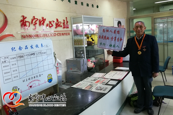10月19日上午,南宁中心血站迎来了一位特殊的人物,他就是中国农民宣传无偿献血第一人“农民献血大王”杨顺德先生。杨顺德先生来到南宁最大的捐血屋-朝阳捐血屋通过现身说法、图片展示、指导献血者填表等形式宣传献血。在场的献血者被他的精神和毅力所感动,大家纷纷伸手参加献血活动。