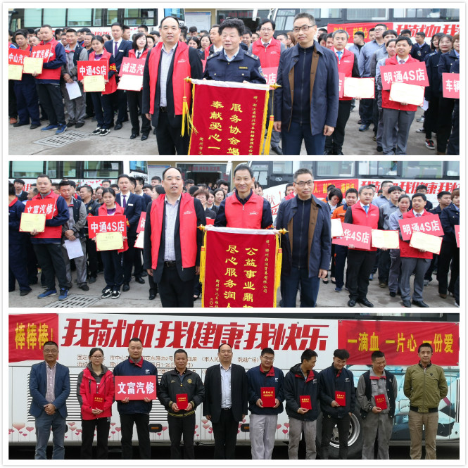 省汽车维修行业协会副会长、市车辆综合性能检测有限公司胡伟民总经理亲自来到采血现场,为参加无偿献血的队员们鼓劲喝彩。