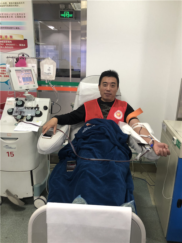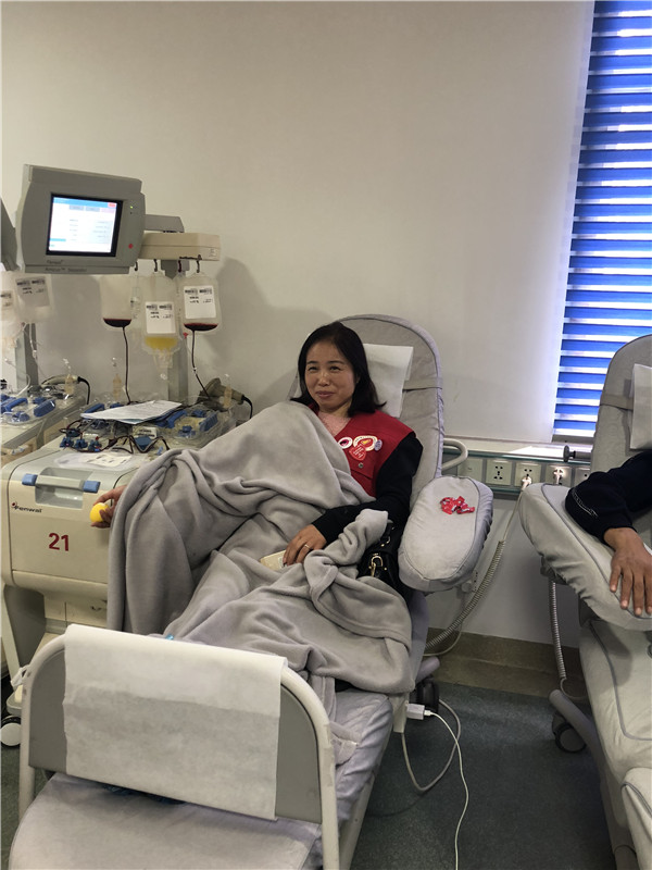 吴双云既是血液中心的一位资深献血者,也是一位无偿献血宣传服务志愿者。从2001年他开始无偿献血,2017年10月第一次尝试捐献血小板,18年间已累计捐献全血2800毫升,血小板38个治疗量。从无偿献血宣传、招募服务到捐献血小板都是随叫随到、风雨无阻,总能把正能量带给身边的人。他的妻子关文萍,也在他的带动下今天第一次来中心机采科捐献血小板,并积极加入了无偿献血宣传服务志愿者队伍,有了自己丈夫作为榜样与陪伴,她丝毫没有对献板的紧张情绪,整个献板过程顺利而又温馨,当天夫妻两个人都捐献了2个治疗量的血小板,他们的大爱之心与无私奉献的精神感动了周围的每一个人!
