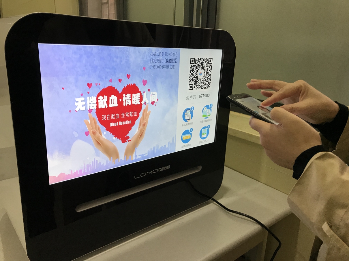 通过照片打印机,献血者们只需要扫描屏幕上的二维码,关注“郴州市中心血站”微信公众号,回复“我的照片”,根据提示上传编辑照片,确认选择后回复屏幕上显示的动态消费码,即可免费打印照片。