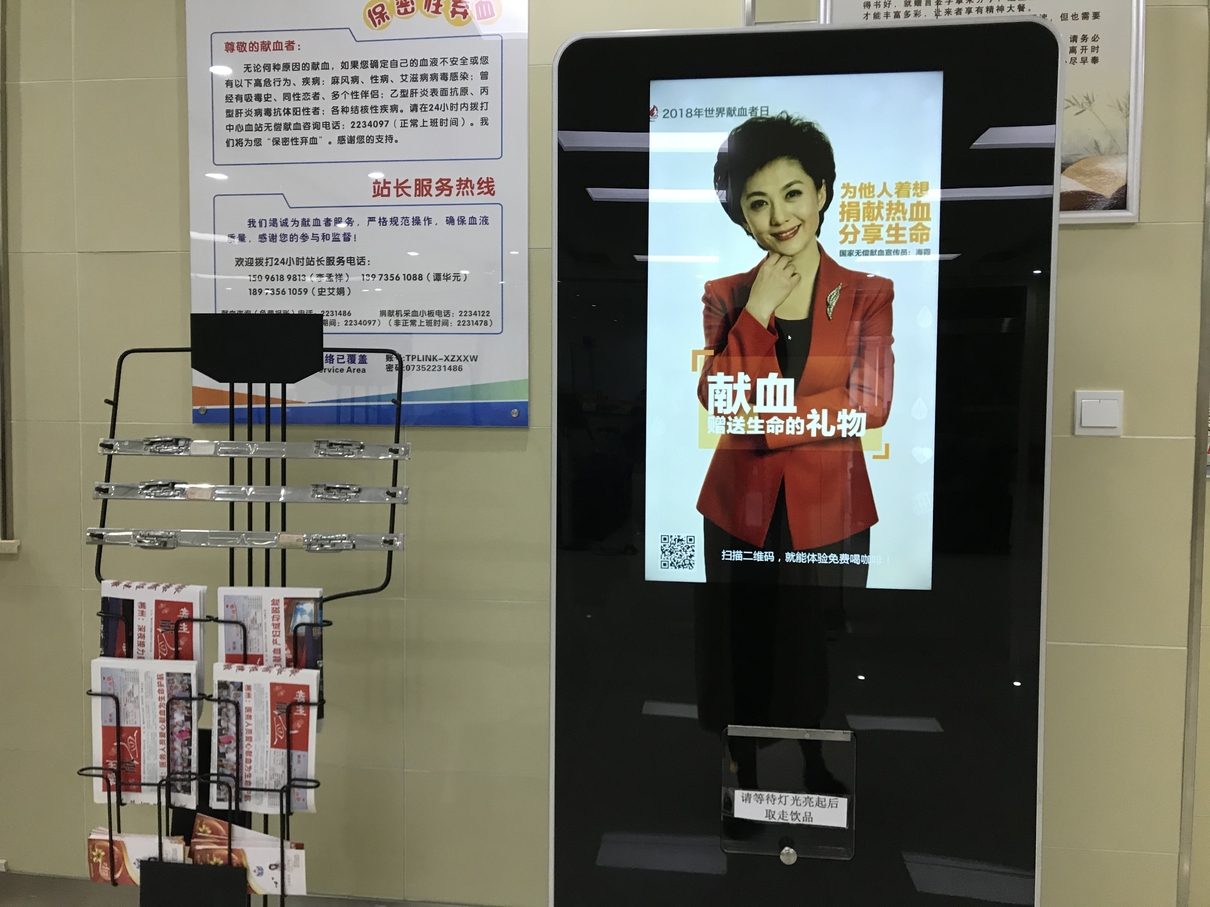 秉承“建人民满意血站,保人民幸福安康”的工作理念,郴州市中心血站一直以来都在不断提高献血服务,强化献血体验,积极用爱为广大市民营造“家”的温暖。赶追新时代发展潮流,郴州市中心血站也开始探索“互联网+献血体验”。据了解,这两台设备目前已在血站献血大厅就位,后续会投入市城区街头献血点使用。(李孟玲)