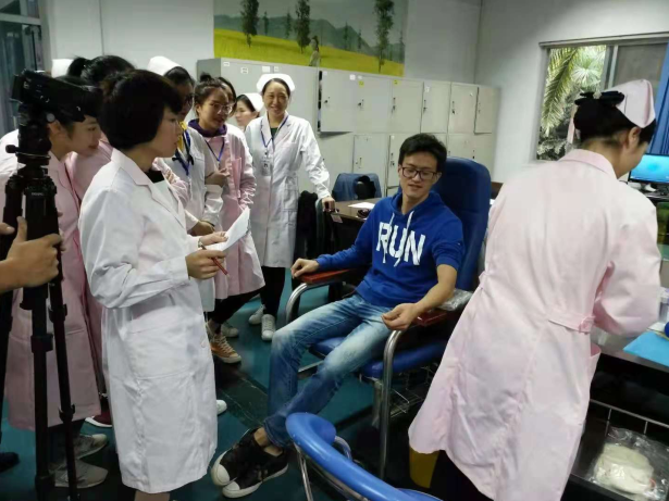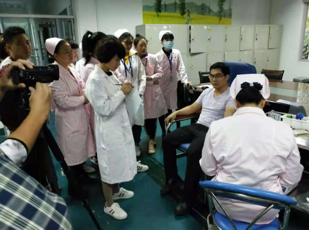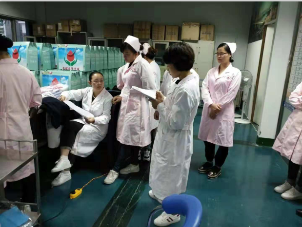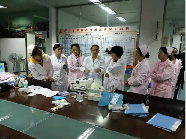 以上图为献血服务科开展《血站操作技术规程》演练现场