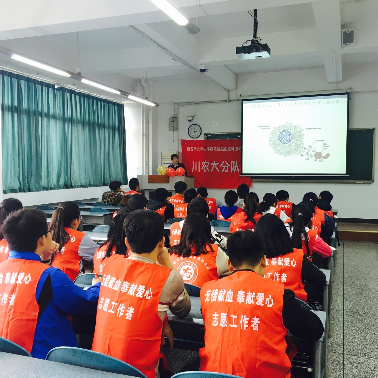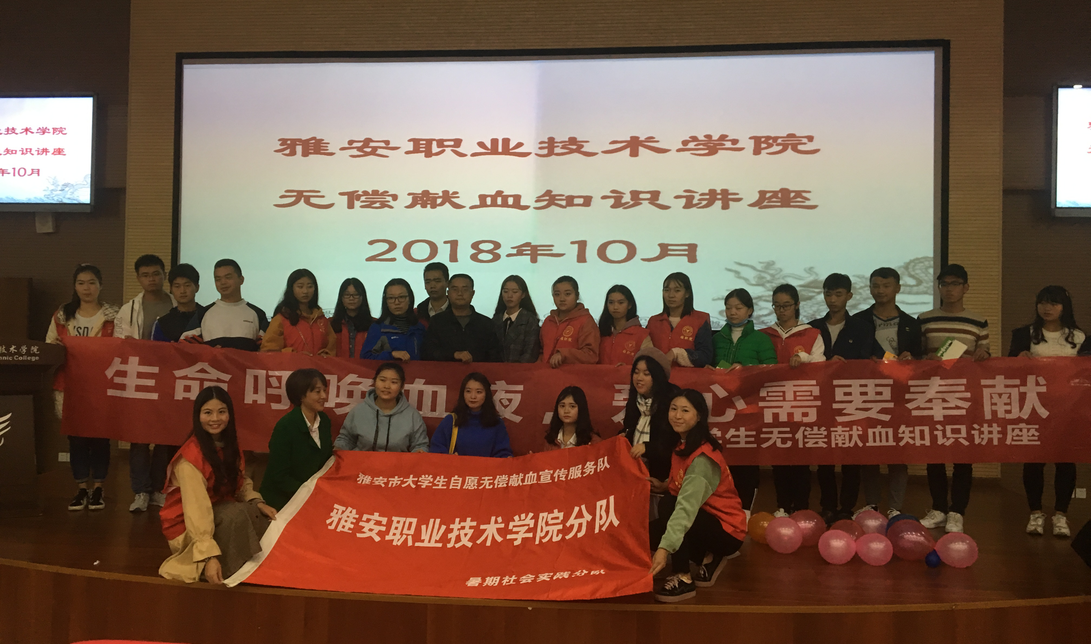 《中华人民共和国献血法》颁布实施20周年之际,为弘扬“无偿献血,奉献爱心”的人道主义精神,进一步加强校园内无偿献血志愿者队伍建设,宣传无偿献血知识,引领大学生用实际行动为推动社会文明进步、推进健康雅安建设贡献力量,2018年10月22日至30日,雅安市中心血站组织开展了以“生命呼唤呵护,爱心需要奉献”为主题的大学生无偿献血志愿者培训暨血站开放日系列活动,来自四川省农业大学、雅安职业技术学院无偿献血志愿者代表400余人参加了此次活动。