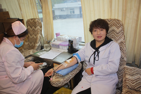 前不久,彬州市中医院组织职工开展无偿献血公益活动,B型血的刘亚娟第一个填表走向采血车,再次献血400毫升。