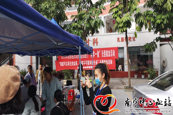 11月8日上午,南宁中心血站联合宾阳县妇幼保健院践行“两学一做”无偿献血活动。据统计,活动有近100人参加,成功献血52人,献血量13400毫升。