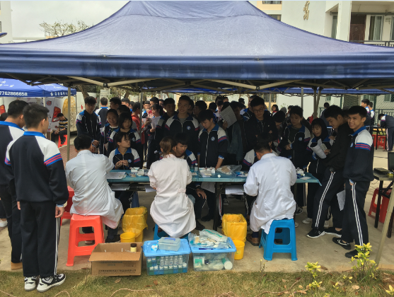 血液,生命的源泉;爱心,生命的曙光;快乐,生命的本质。为培养广大学子的公民意识、服务意识和奉献精神,提供一个奉献爱心的平台,百色市中心血站联合靖西中学、靖西二中、靖西民族高中三所高中,在11月9-11日三天时间里,共同开展“红城百色 我成人我担当”主题无偿献血活动。为确保活动顺利开展,活动前,血站工作人员到校园开展无偿献血知识讲座,张贴无偿献血海报板报,并做好活动的前期宣传、志愿者招募培训等工作。