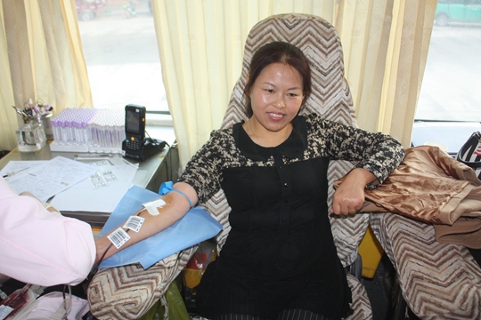 采访正在献血的永寿县人民医院B超室大夫唐亚红,她谦虚地说:“无偿献血,卫计先行。献血救助患者,这是我们应当做的。”