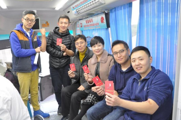 11月8日一早,阴雨绵绵,潍坊广播电台的编辑、记者、主持人10余人冒雨赶到血站。这一次不同以往的采访,他们专程参加无偿献血,以公益行动纪念记者节。为了不耽误一天的正常工作,不到8点,他们已陆续聚集到采血车。有过多次献血经历的冯传春主任,第一个完成了献血,他从容淡然的表情传递给身边同事一个信息:无偿献血就是这么简单。933频道副总监周云,是第一次献血。今年因为参与策划纪念《献血法》实施20周年主题活动,而对无偿献血有了深入了解,特别是对献血英雄人物的采访,使她越发萌生了无偿献血的愿望,今天有机会终于如愿以偿。谈到献血的体会,她显得格外激动:“如果没有亲身经历,是无法真正体会到献血的过程让心底感觉无比神圣。作为媒体人,有责任积极参与这项公益行动,并向更多有爱心的人士进行宣传。献血无尚光荣!”