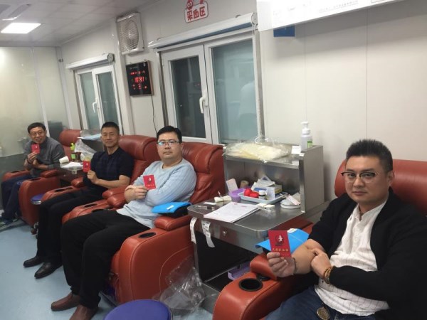与此同时,位于市于谷德广场的爱心献血屋也迎来几位媒体人,潍坊电视台都市频道总监孟力也带同事一起,在工作间隙无偿献血。孟力总监表示这样过节非常有意义,非常难忘,并表示相约明年,带动更多的同行一起奉献爱心。