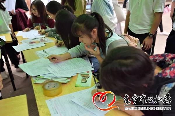 11月14日上午,南宁中心血站联合广西民族大学相思湖学院在学院学生宿舍楼下开展爱心献血活动,该学院每次组织无偿献血活动都得到广大学生的积极响应和大力支持,大家都有序的在工作人员引导下完成填表、电脑查询、血液筛查、采血。