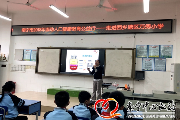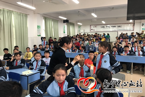 11月13日下午,南宁中心血站联合西乡塘区万秀小学开展了一场无偿献血知识进校园活动,该校200多名师生接受无偿献血知识的科普教育。
