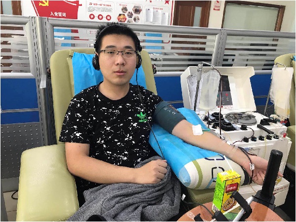 王子剑,是河北工业大学一名大三的学生,自2016年的大一开始就参加成分献血,至今已经成功献血17次,累计捐献17个治疗单位的机采血小板。他觉得捐献热血这是利人利己的公益行为,就像是听音乐做运动似的。朴实的言语,平常的心态,让人感受到对于他们而言,无偿献血这种助人利己的行为早已得到了大学生们的高度认可。
